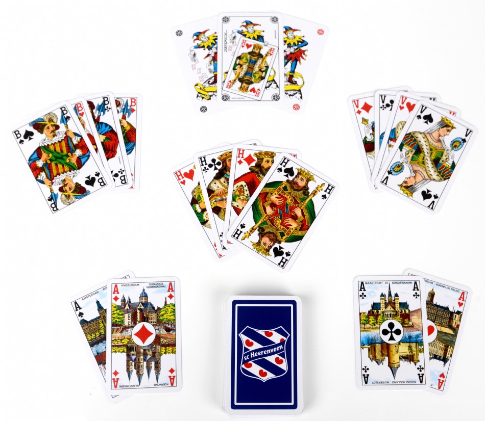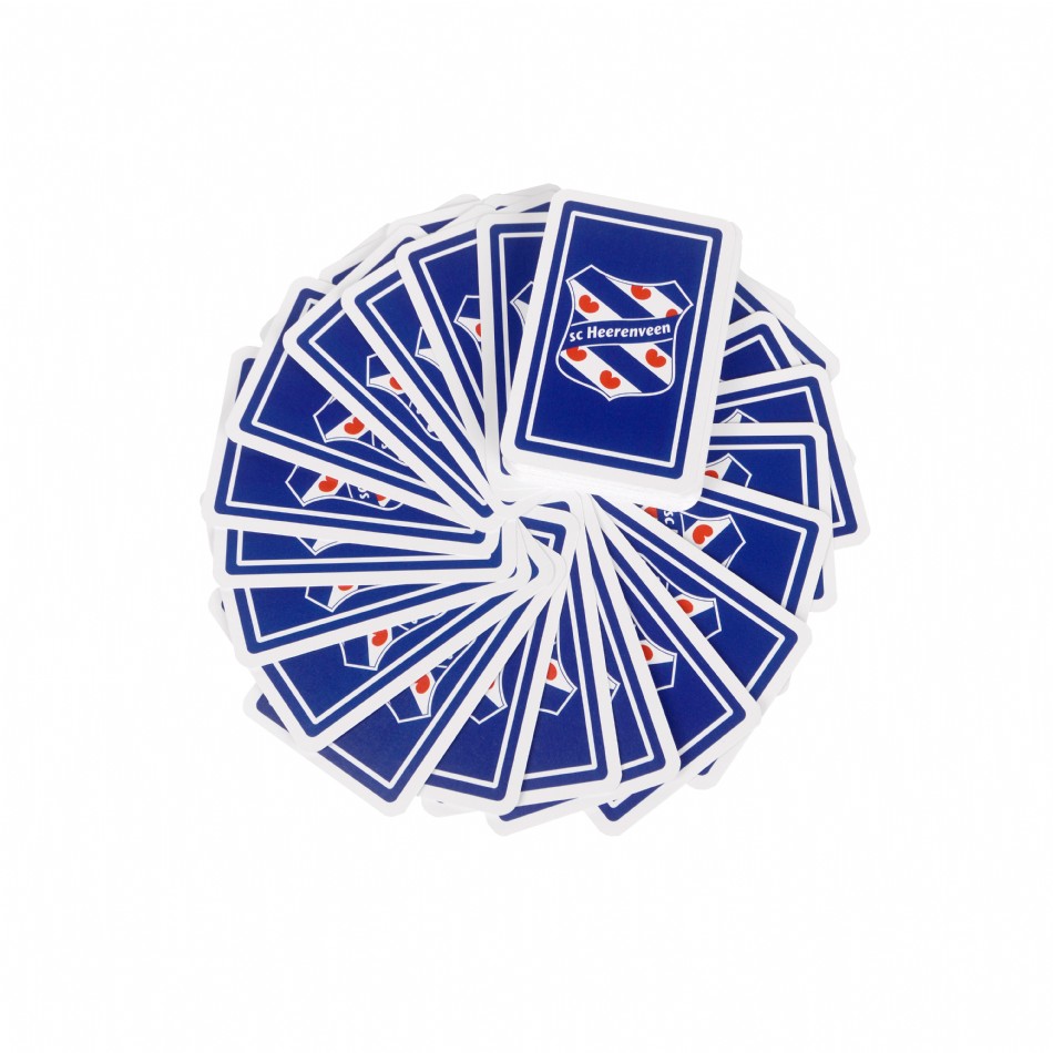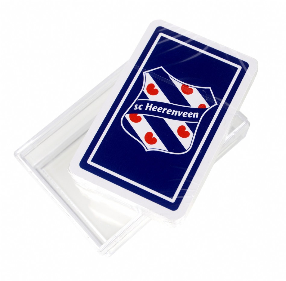 Set speelkaarten met het logo van sc Heerenveen. Verpakt in een stevig plastic doosje.