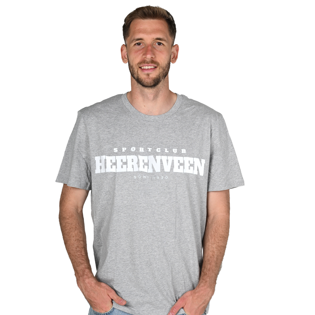 Met dit grijze sc Heerenveen T-shirt kun jij altijd en overal laten zien wat je favoriete club is. Comfortabel en stoer, maar tegelijkertijd een écht sc Heerenveen-item door onze naam en het oprichtingsjaar op de voorkant; dit is een must-have voor de garderobe van elke supporter.