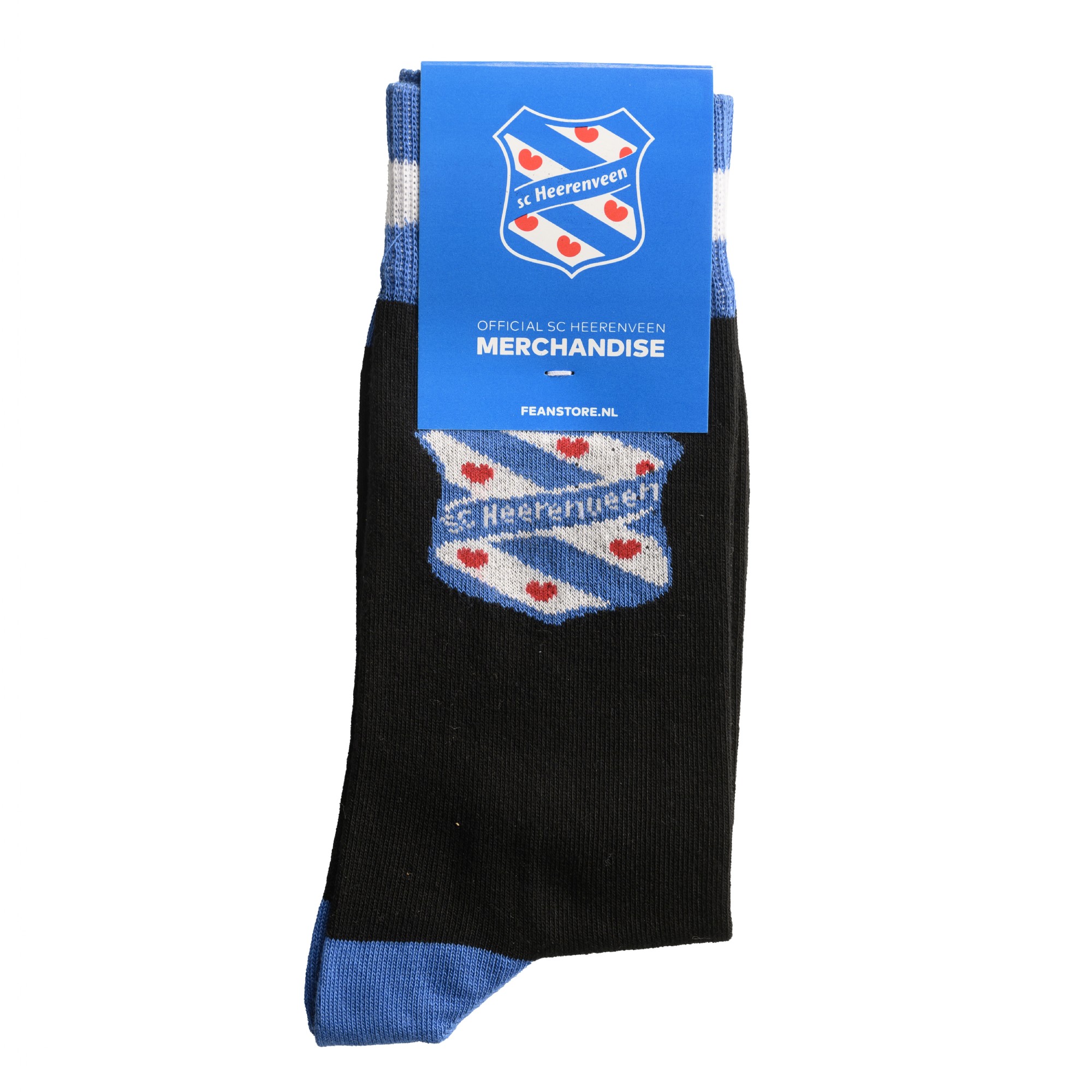 Met deze sokken draag je jouw favoriete club altijd bij je! Met het sc Heerenveen-logo op je been, in combinatie met een blauw-wit-blauwe lijn aan de bovenkant, kun jij met warme voeten naar het Abe Lenstra stadion!