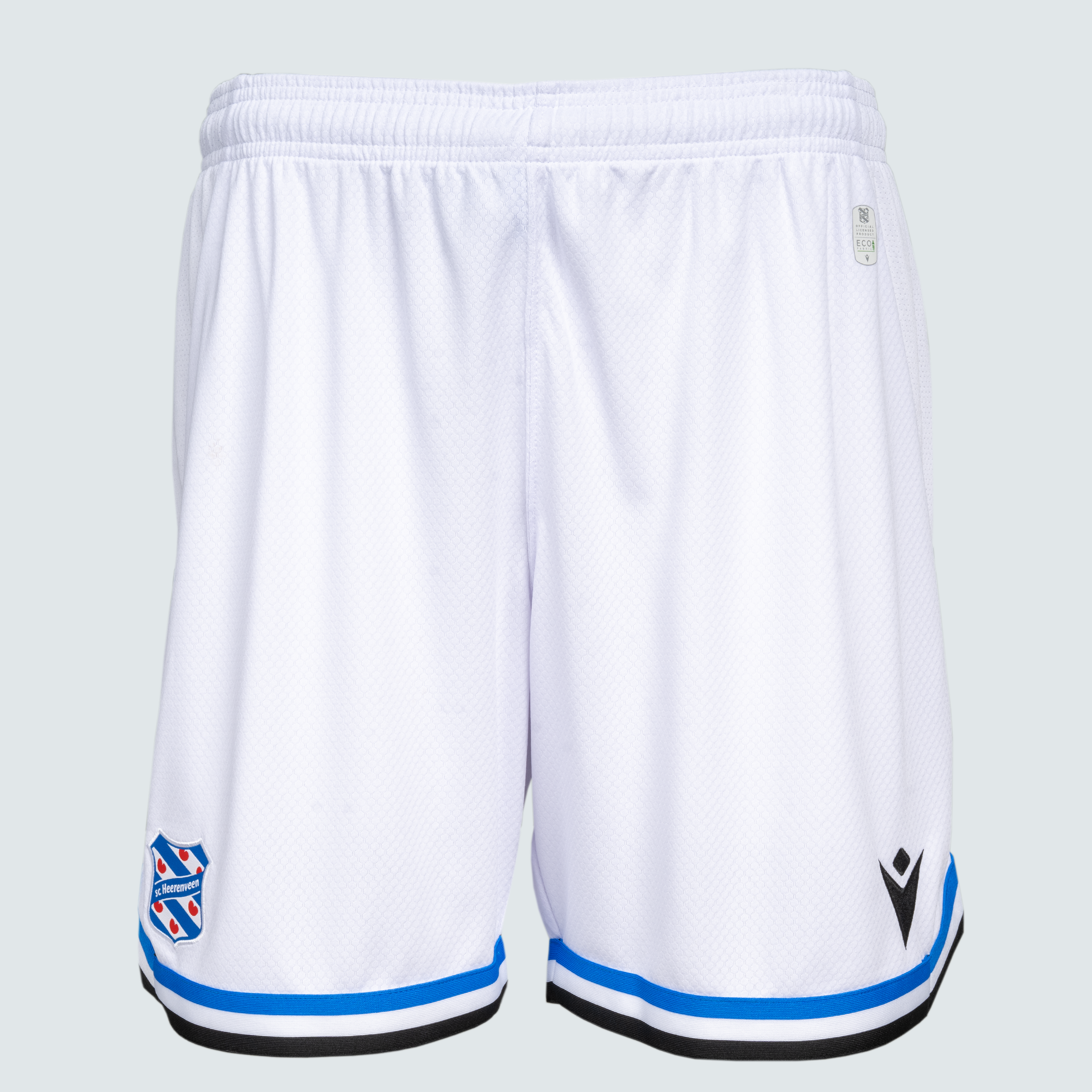 Bij het sc Heerenveen Thússhirt 2025/2026 hoort traditiegetrouw een wit broekje. De blauw-wit-zwarte baan die op de onderkant van de mouw zit op het shirt, zit ook onderaan de broek. De logo’s van Marcron prijken in het zwart op het broekje. Het logo van sc Heerenveen staat er in de vertrouwde kleuren op.
