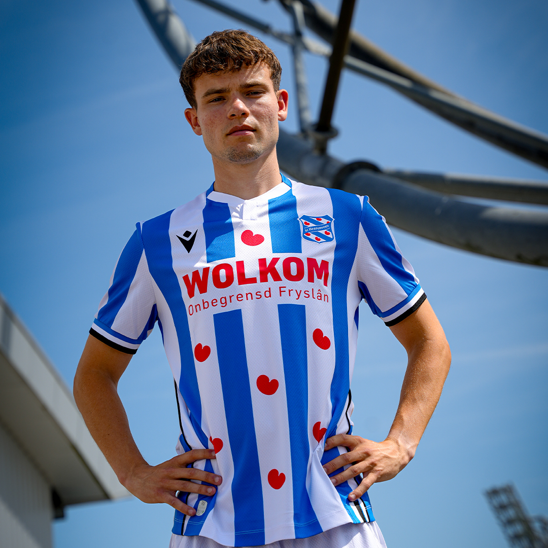 De vlag van Heerenveen is de inspiratie geweest voor de blauw-wit-zwarte baan aan het uiteinde van de mouwen. Eenzelfde soort element bevindt zich rechtsonder in het shirt. Verder komt de zwarte kleur terug in het geborduurde Macron-logo, in een subtiele lijn aan de zijkant en bovenin de achterkant. Maar uiteraard voert vooral de Fryske vlag de boventoon.