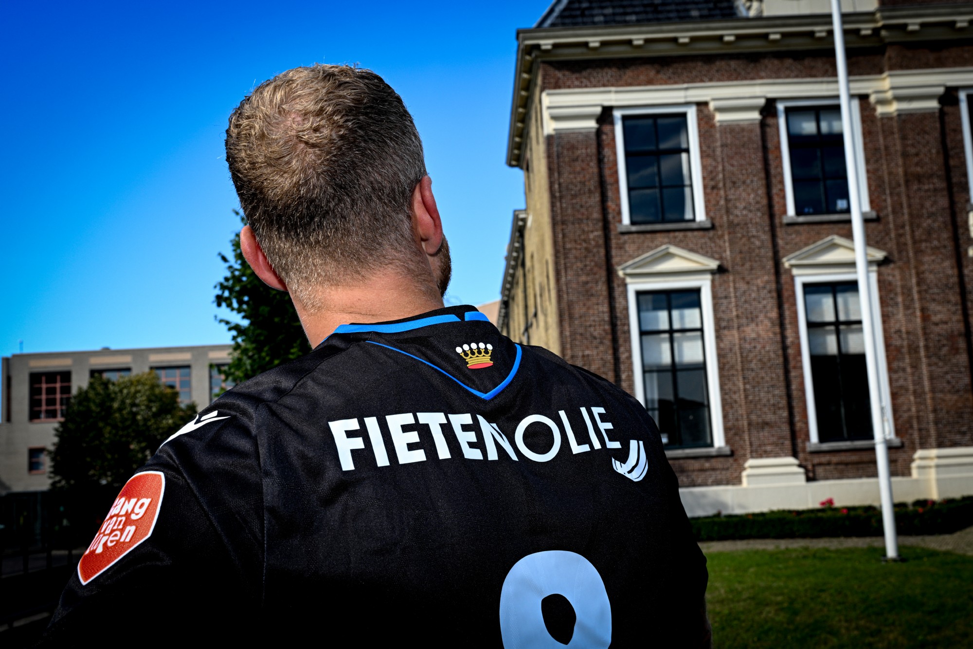 De rugsponsoren; Fietenolie en Moofpeople staan niet standaard op het shirt.