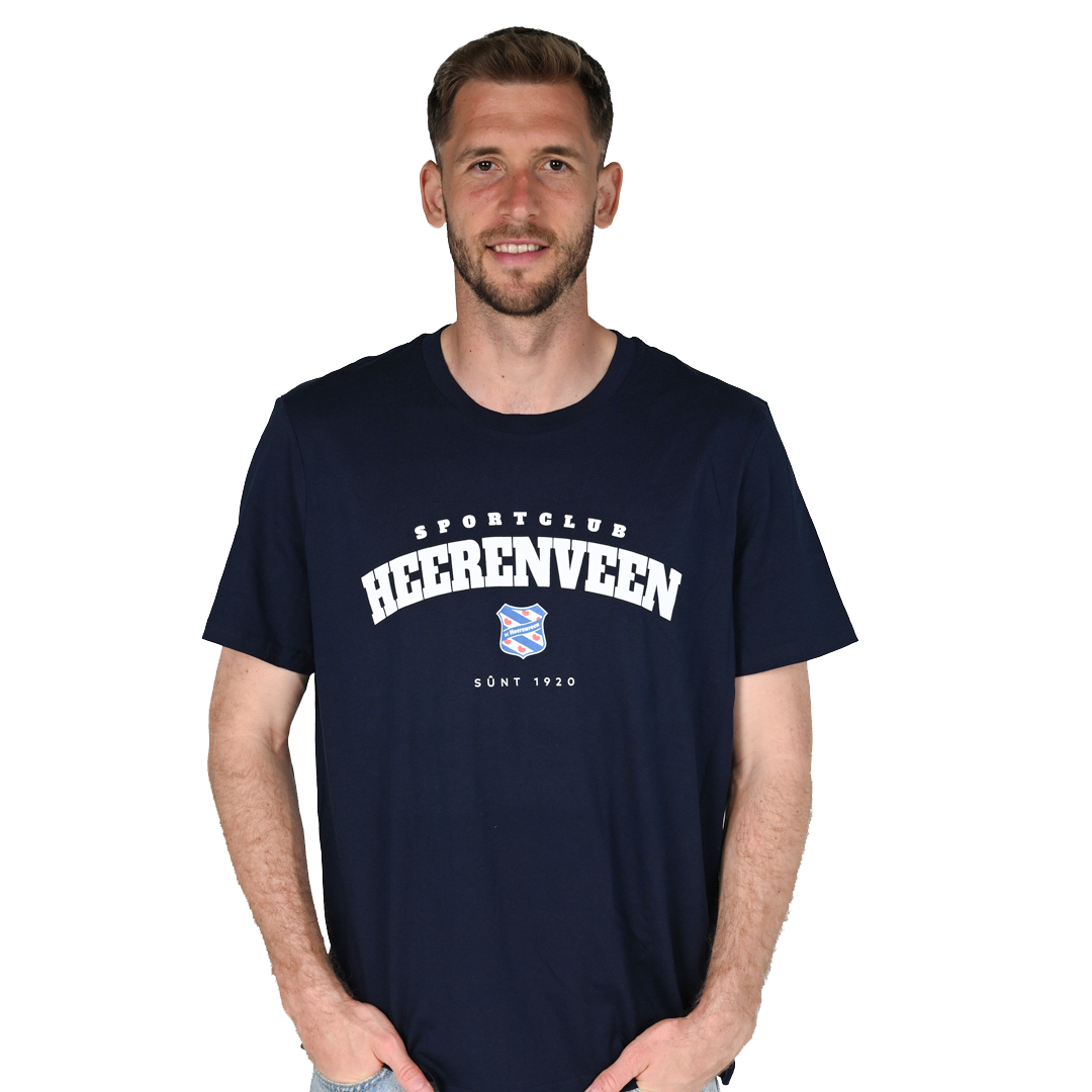 Met dit donkerblauwe sc Heerenveen T-shirt kun jij altijd en overal laten zien wat je favoriete club is. Comfortabel en stoer, maar tegelijkertijd een écht sc Heerenveen-item door ons prachtige logo en het oprichtingsjaar op de voorkant; dit is een must-have voor de garderobe van elke supporter.